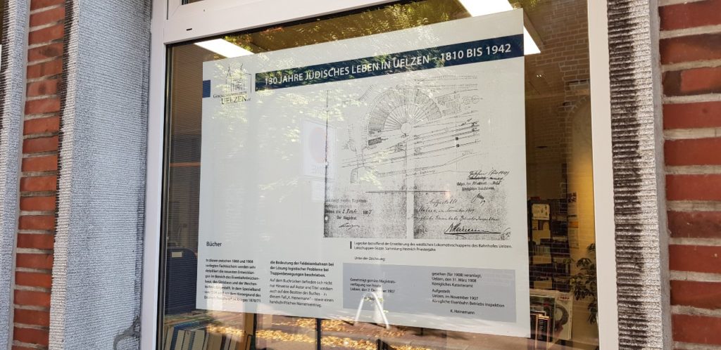 Das erste Poster gibt – konzentriert in wenigen Sätzen – Informationen über die Geschichte der jüdischen BürgerInnen in Uelzen. Wir zeigen zwei Abbildungen: das Titelblatt des Steuerverzeichnisses von 1847/48 und der jüdische Friedhof in der Niendorfer Straße. Diese Bilder stehen einerseits für die beruflich-soziale Integration und das wirtschaftliche Mitwirken der jüdischen Menschen anderseits weisen sie auf ihren Ausschluss aus der Gemeinschaft hin, denn sie durften ihre Tote nicht im städtischen Friedhof begraben.